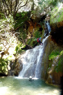 Si no queremos llevar dos cuerdas (no recomendable), una vez descendida la colada del "Salt" des Freu" podemos subir a recuperar la cuerda de la cascada para instalarlar en el segundo salto en importancia que se encuentra próximo a la gran cascada. UNa vez superado este segundo salto el curso del torrente es bastante plano al menos hasta llegar al desfiladero, por el camino nos encontraremos un par de presas que deberíamos aliviar de agua si están muy llenas para así evitar que revienten mientras nosotros nos encontremos en el torrente. La parte final de esta gorga es la más deportivas donde se suceden los rápel y saltos uno detrás de otro para finalmente terminar en un lago de razonables dimensiones al que podremos saltar y después de cruzarlo a nado abandonar el torrente por el lado izquierdo para desde ese lugar localizar una pequeña barrera metálica que nos acercara al camino de regreso.